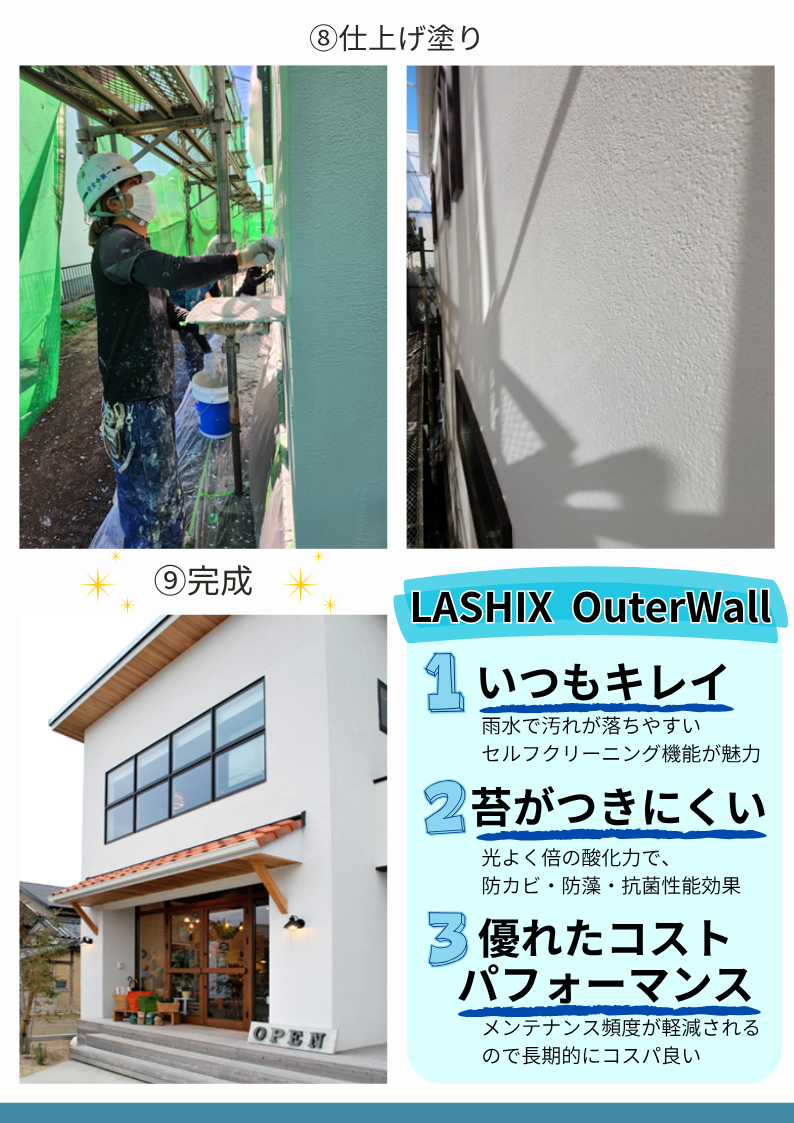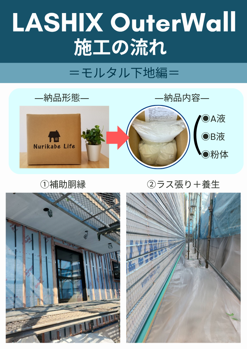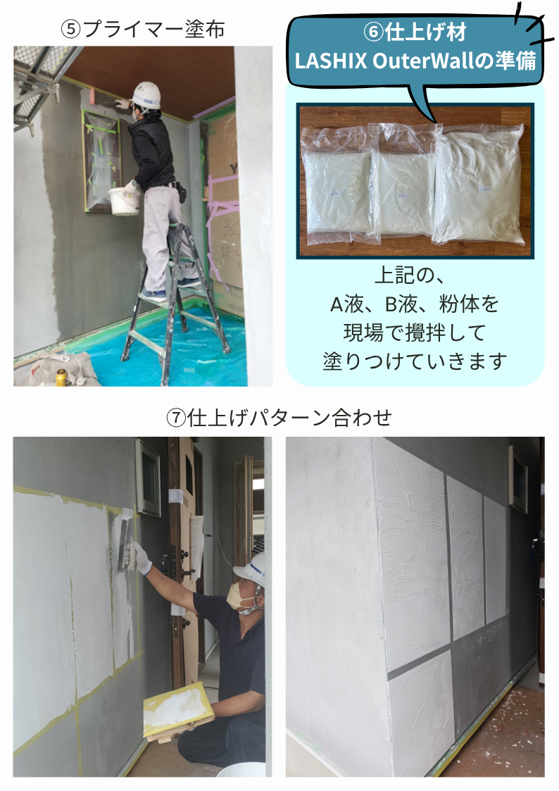 - 『仕上げ材:LASHIX OuterWallの施工の流れ』をご案内いたします