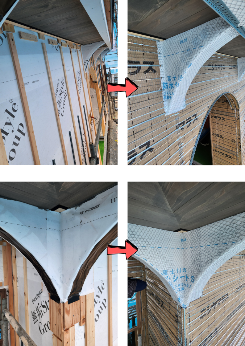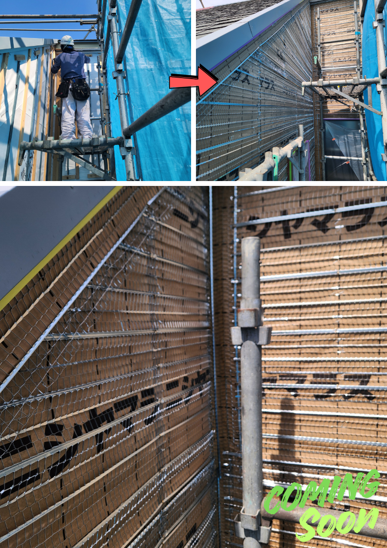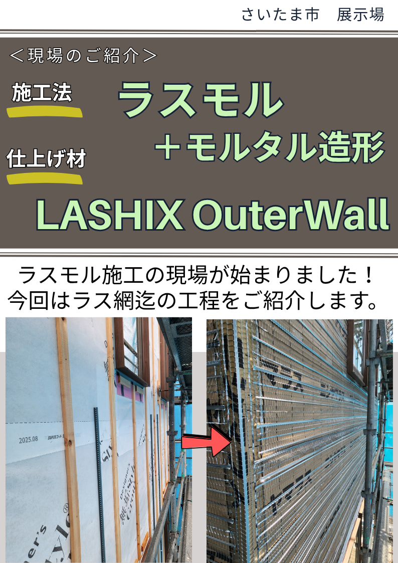 それでは今日は、『施工法=ラスモル+モルタル造形、仕上げ材=LASHIX OuterWall』の現場が始まりましたので、ご紹介いたします。