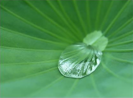 ハスの葉の表面には細かい起毛があります。その起毛により水は水滴になり、汚れの粒を取り込みながら簡単に表面を転がります。このため、雨が降るたびすぐに乾燥しきれいになります。 この効果を『ロータス効果』といいます。