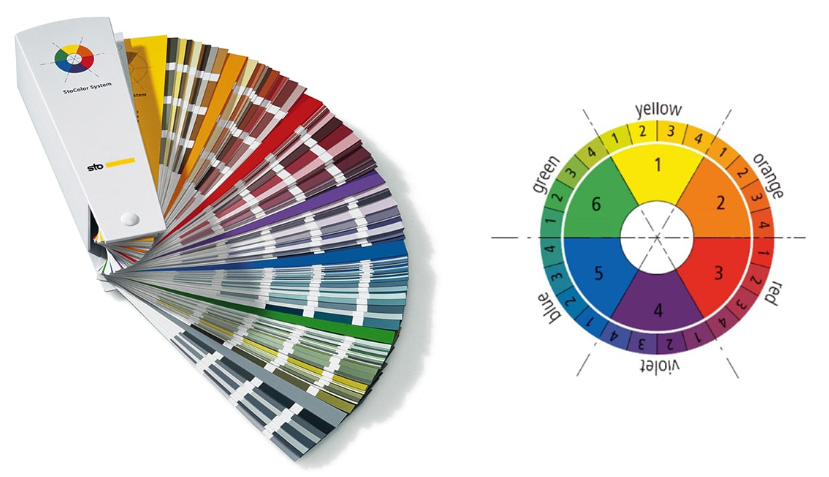 Sto社オリジナルのカラーシステムは800色。黄・オレンジ・赤・紫・青・緑の6つのパートを基調とし、24のベーシックトーンがカラーホイールを構成しています。多くのカラーニーズにお応えすることができます。色に加え、材料の特性に合わせて、様々なテクスチャーを実現することができ、さらに壁の表情を豊にすることが可能です。